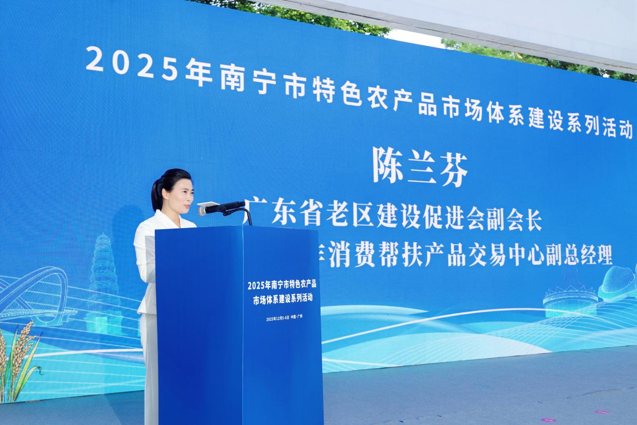 广东省老区建设促进会副会长、广东区域协作消费帮扶产品交易中心陈兰芬在致辞中表示,交易中心将持续赋能南宁市特色农产品市场体系建设,通过产品展示、商务洽谈、专题培训、实地考察和招商引资等多种方式,全力推动南宁特色农业产业向规模化、标准化、品牌化迈进,为乡村振兴注入更强劲的市场动能。