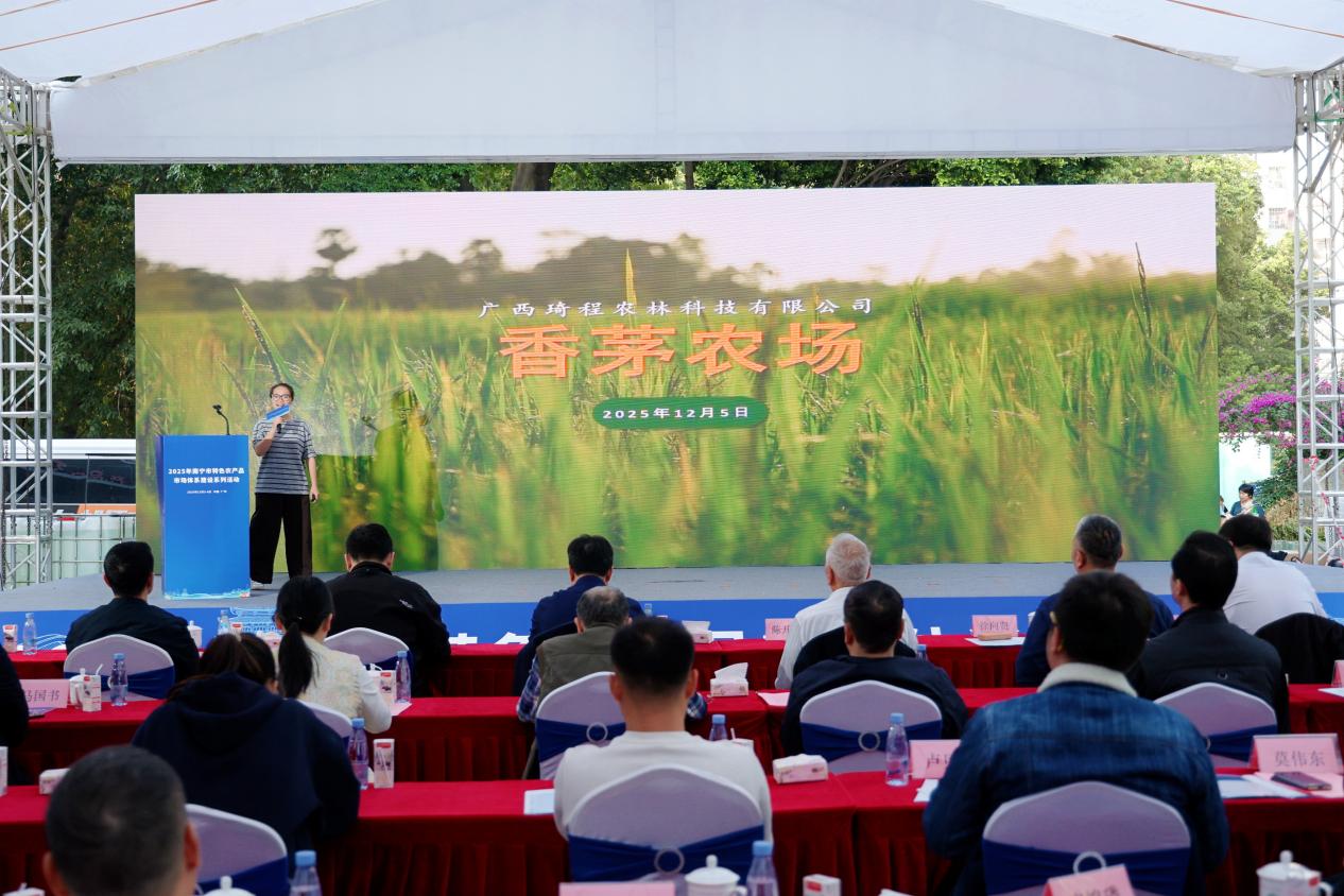 推介环节中,邕商汇的热带水果、华隆乳业的鲜乳制品、琴榜山农业的生态杂粮、琦程农林的香茅鸭、复记食品的老友粉等5家南宁龙头企业轮番“亮王牌”,5分钟干货推介展示南宁优品品质,每款产品都带着“生态标签”,让采购商眼前一亮。