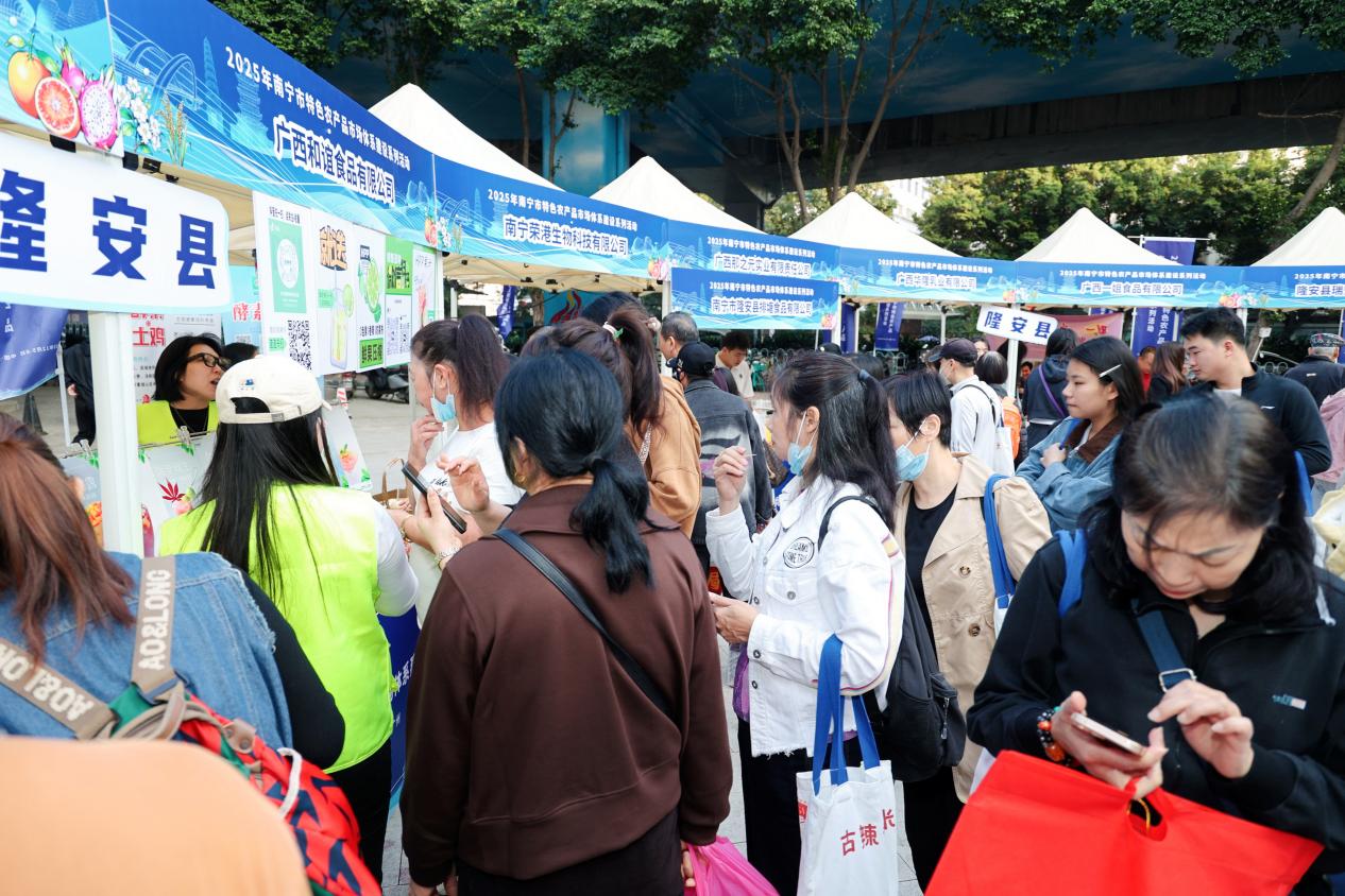 活动广场上,百余款南宁农特产品整齐陈列,从香气扑鼻的香茅鸭到酸辣爽口的老友粉,从甘甜滋润的沃柑汁到甘甜醇厚的水牛奶,试吃摊位前大排长龙,不少市民都在抢购这难得的“邕品”。