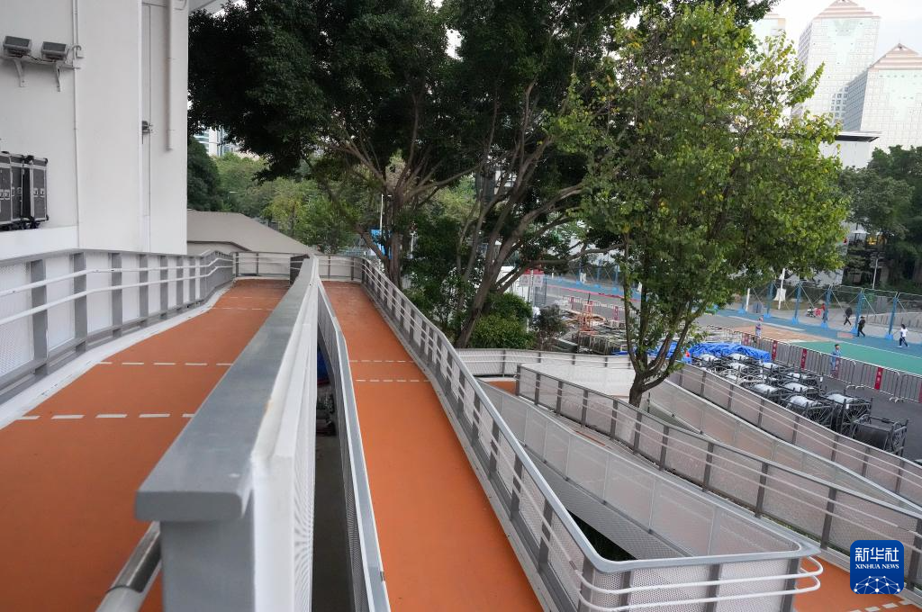 这是广东奥林匹克体育中心体育场内部的盲道(12月7日摄)。