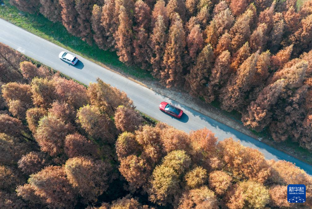 12月8日在浙江省湖州市长兴县夹浦镇拍摄的乡村公路(无人机照片)。