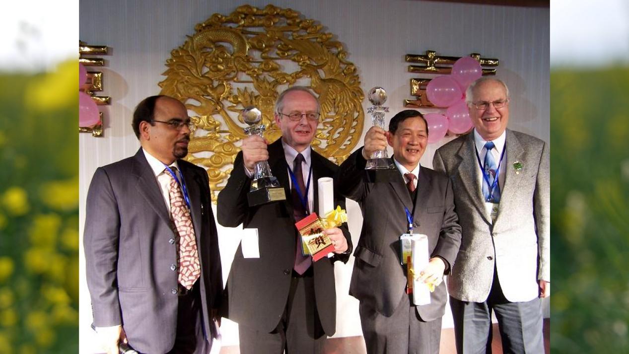 就是这株不起眼的‘母油菜’,加上后来找到的18株同类,彻底改写了中国油菜育种的历史。科研人员以它们为基础,培育出了一个又一个高产杂交油菜新品种。这是世界上首个有实用价值的油菜雄性不育类型,国际上都叫它“傅氏波里马”,足见外国人对都对傅廷栋院士的伟大发现,佩服得五体投地!1985年到1994那十年,国际上注册的22个油菜杂交种里,有13个都用了傅廷栋发现的这个“宝贝材料”。1991年在加拿大的国际油菜大会上,傅廷栋捧得了“杰出科学家”奖章,这可是亚洲科学家头一回获这荣誉,大会主席说:“傅廷栋教授的发现,为油菜利用杂种优势铺平了道路……欧洲人毫无保留地将这归功于中国人。”