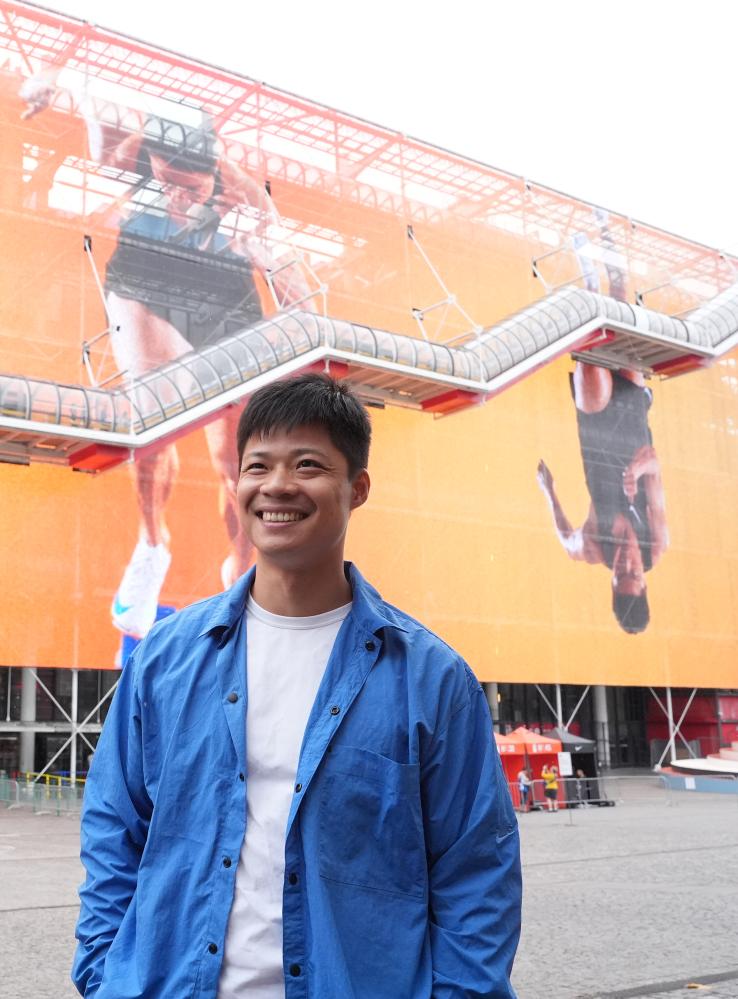 2024年7月27日,苏炳添在巴黎奥运会期间于巴黎蓬皮杜艺术中心外留影。新华社记者孟永民摄