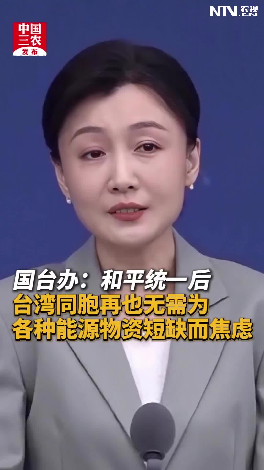 国台办:和平统一后,台湾同胞再也无需为各种能源物资…