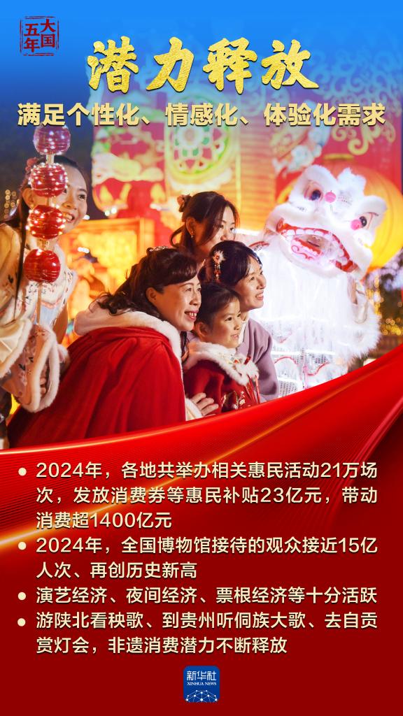 网上零售额连续12年全球第一,服务消费占比持续提升,新能源车渗透率突破五成……“十四五”期间,我国消费市场稳步扩大,结构持续优化,潜能加速释放,发展“主引擎”作用更加凸显,人民美好生活更加具象鲜活。