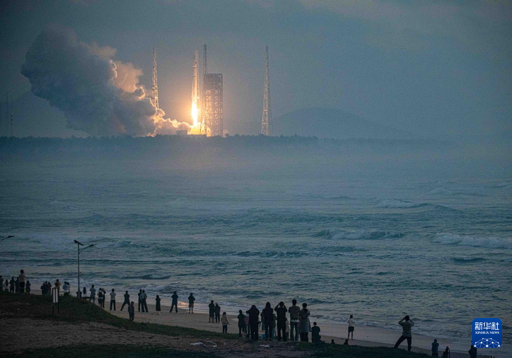 12月12日,人们在海南文昌观看海南商业航天发射场执行火箭发射任务。该发射场位于海南自贸港重点园区——文昌国际航天城。