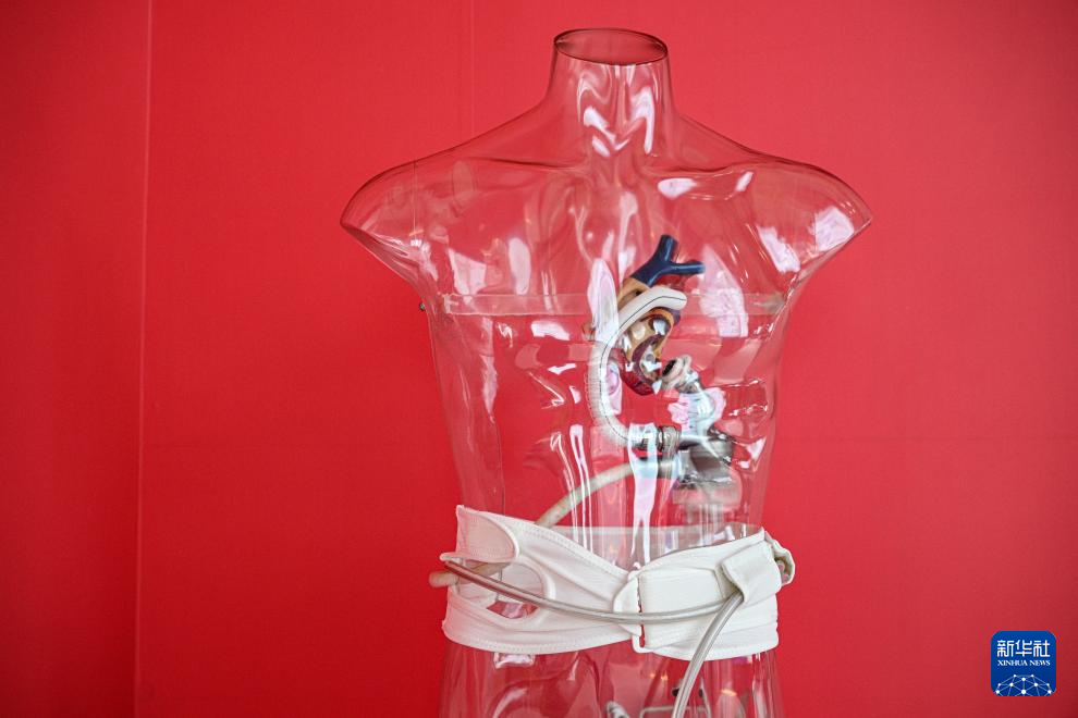在海南自贸港重点园区——博鳌乐城国际医疗旅游先行区举办的“永不落幕”国际创新药械展上拍摄的植入式左心室辅助系统,该系统俗称“人工心脏”(10月27日摄)。