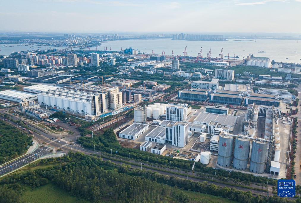 在海南自贸港重点园区——洋浦经济开发区拍摄的洋浦保税港区,远处即是国投洋浦港(无人机照片,11月21日摄)。