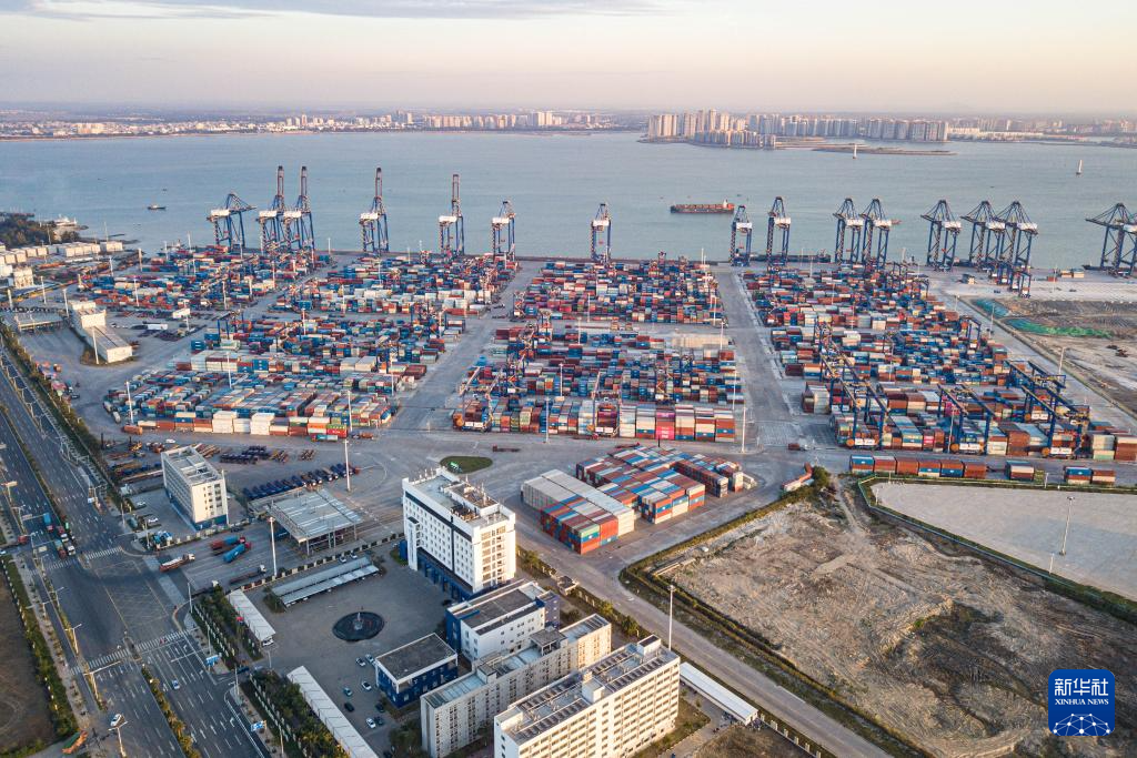 在海南自贸港重点园区——洋浦经济开发区拍摄的洋浦国际集装箱码头(无人机照片,11月21日摄)。