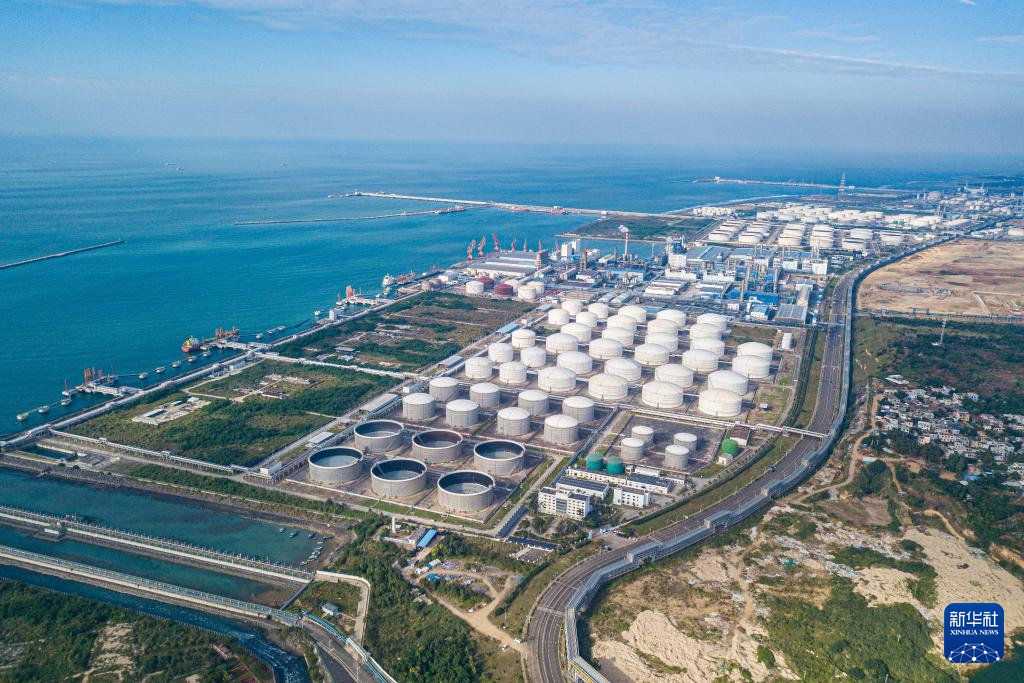 在海南自贸港重点园区——洋浦经济开发区拍摄的石化功能区(无人机照片,11月21日摄)。