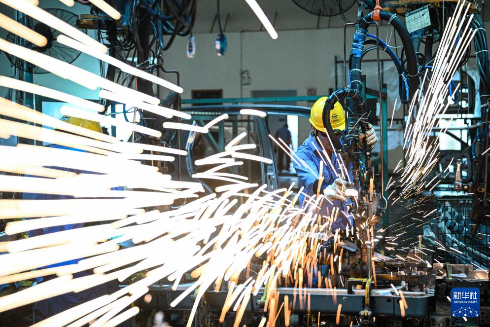 工人在海南自贸港重点园区——海口国家高新技术产业开发区海马工业园焊装车间作业(11月14日摄)。