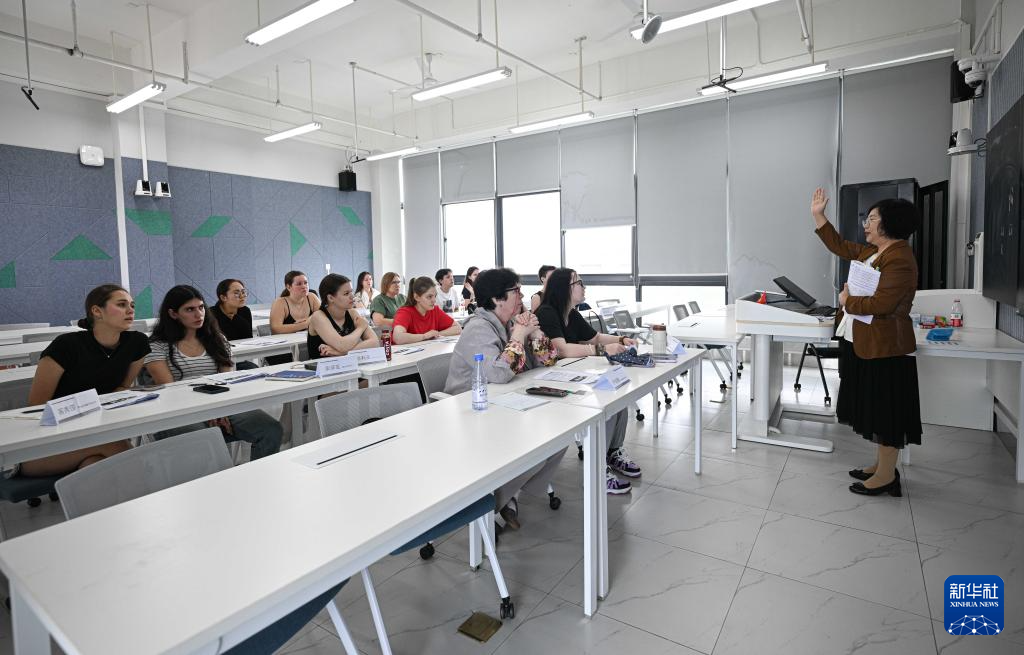 在海南自贸港重点园区——陵水黎安国际教育创新试验区,北京语言大学海南国际学院的老师给外籍学生上中文听说课(11月5日摄)。