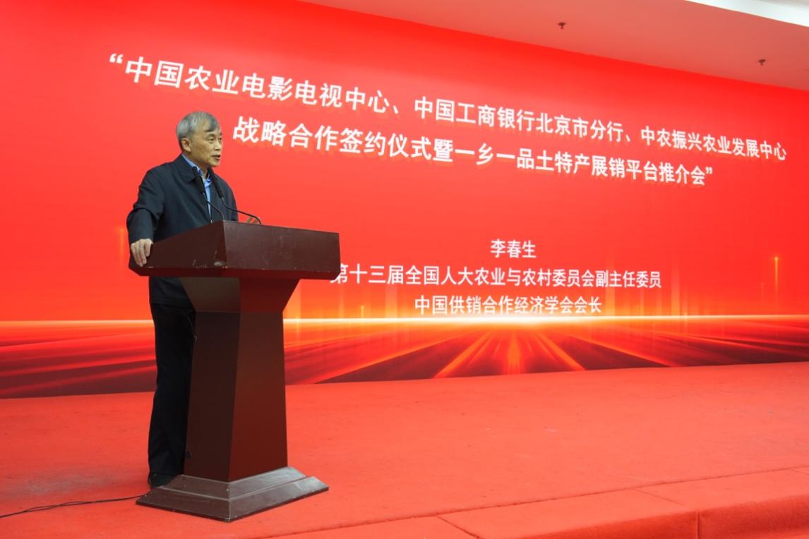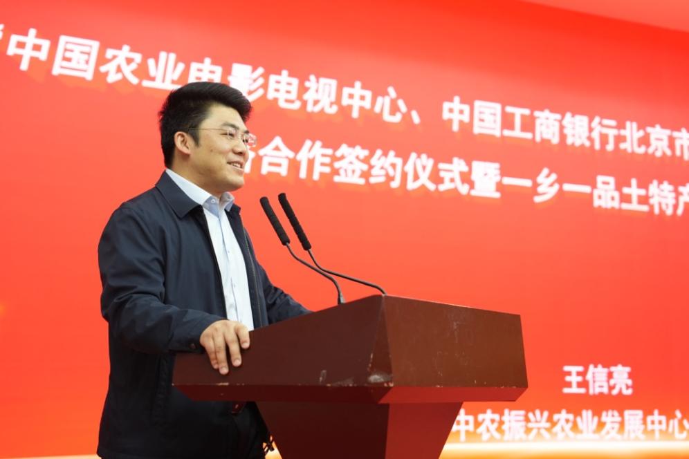 中国农业电影电视中心一乡一品传播中心总监吴兴民在活动中展示了中国农影与银行合作的往期案例及成果总结,展示了“媒体+金融+文化”的优秀合作模式与传播效力。他表示,这次三方的强强联合,既要为中国工商银行的千万客户严选来自源头、品质可靠、故事动人的中国好物;也要为全国的特色农产品品牌提供一个进入首都核心消费市场的品牌高速路,让“土特产”升级为“金名片”; 让更多的优质农业品牌深入人心,书写一段金融助力农业、媒体赋能产业、共同服务国家乡村振兴战略的佳话。