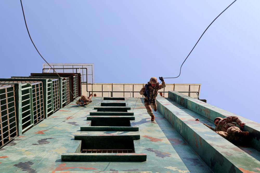 武警广西总队某支队开展群众性练兵活动,营造浓厚的“比、学、赶、帮、超”氛围,强化官兵体能储备与军事技能,淬炼血性胆气。(江怀鹏、陈国鑫)