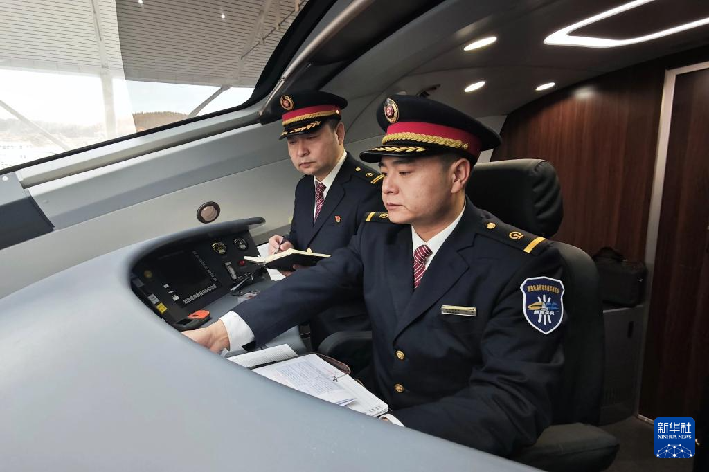 12月26日,西延高铁首发列车司机在进行开车前的准备工作。