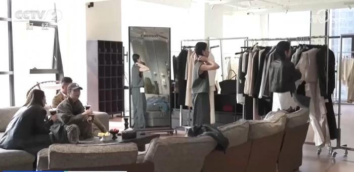 岁末特惠明显拉动了销售,在服装城内,来自全国各地的批发商和个人消费者忙着选款,销售人员一边介绍款式、一边快递打包。