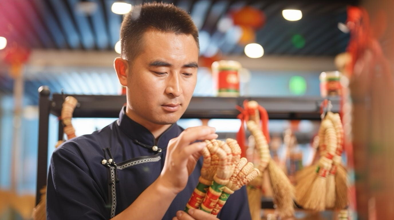 人们或许没见过真正的魔法,但在草原上,乡村工匠李艳垒,却用一双手施展着“编织的魔法”。在他指尖,柔韧的笤帚苗被瞬间辨识,捻、压、穿、挑——一套精准如微雕的连贯动作,让苗秆在无钉无胶的束缚下,仅凭结构便坚固成型。他更将草编、竹编的智慧融入经纬,于是,锅刷上“长”出了福字,痒痒耙化身为精准的按摩师,茶刷悬垂如画……这究竟是手艺,还是魔法?2026年1月6日,让我们走近他指尖的天地,一探究竟。