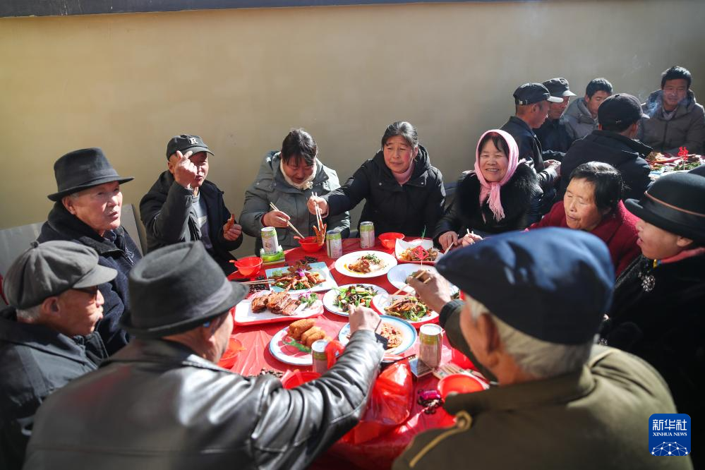 12月29日,村民在榆中县马坡乡马莲滩村集中安置点参加一场乔迁宴。