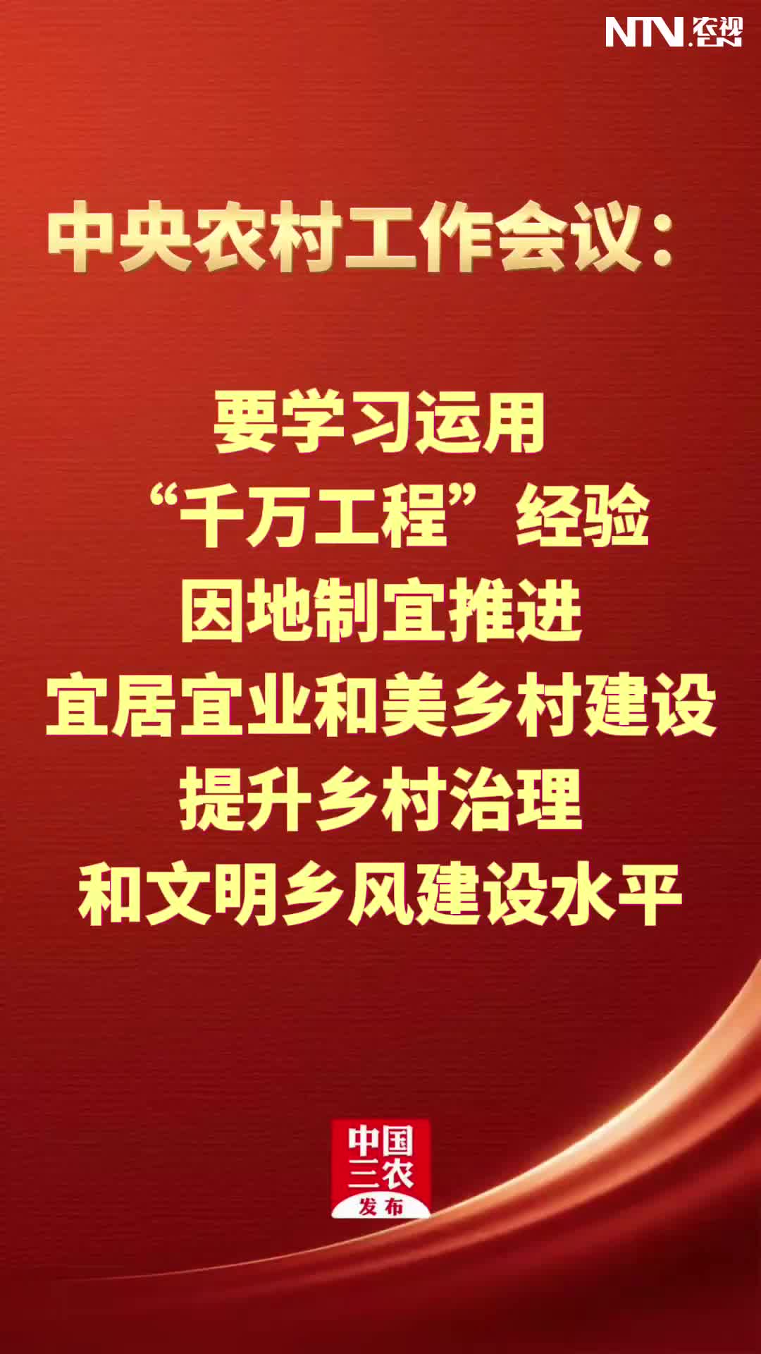 中央农村工作会议:持续整治提升农村人居环境,以钉钉…