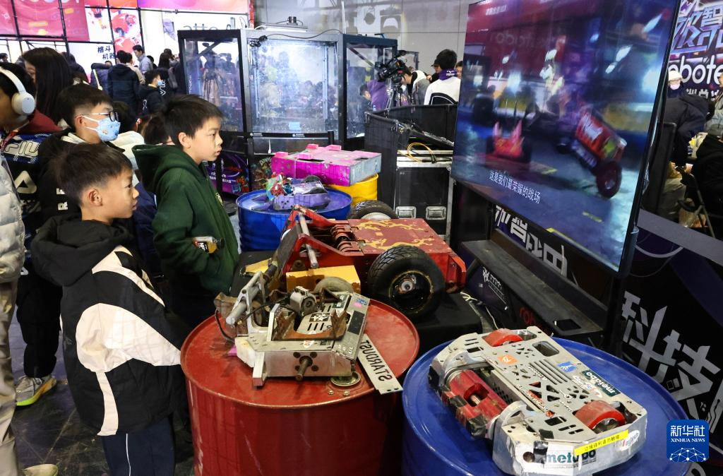 1月2日,参观者观看机器人格斗比赛。