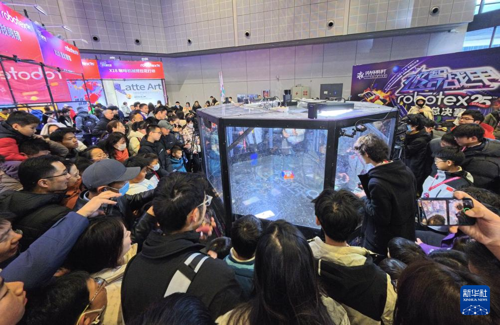 1月2日,参观者在观看机器人格斗比赛。