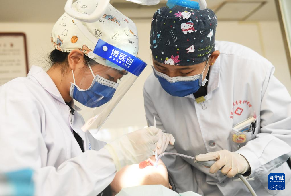 1月2日,在河北省石家庄新乐市一家医院,医生给患者修复牙齿。