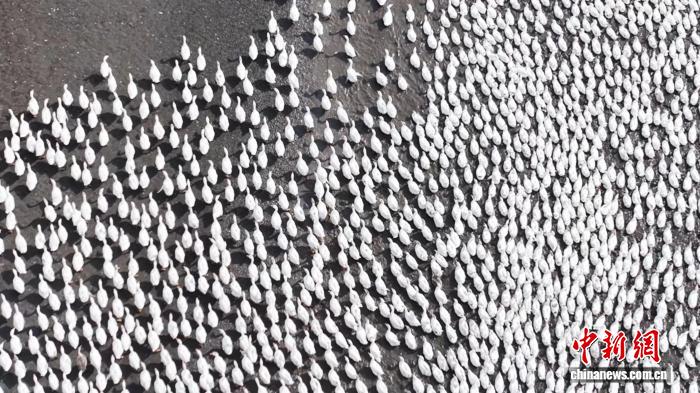 黑龙江北安养殖的大鹅。 高鑫 摄
