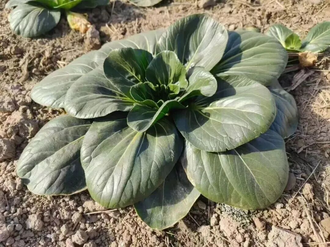 寒冬时节,当大多数蔬菜在冰雪面前退缩时,黑塌菜却愈发青翠欲滴。它叶片黛青带有浓浓的黑晕,几乎贴着地面匍匐而生,被称为“塌地菘”。