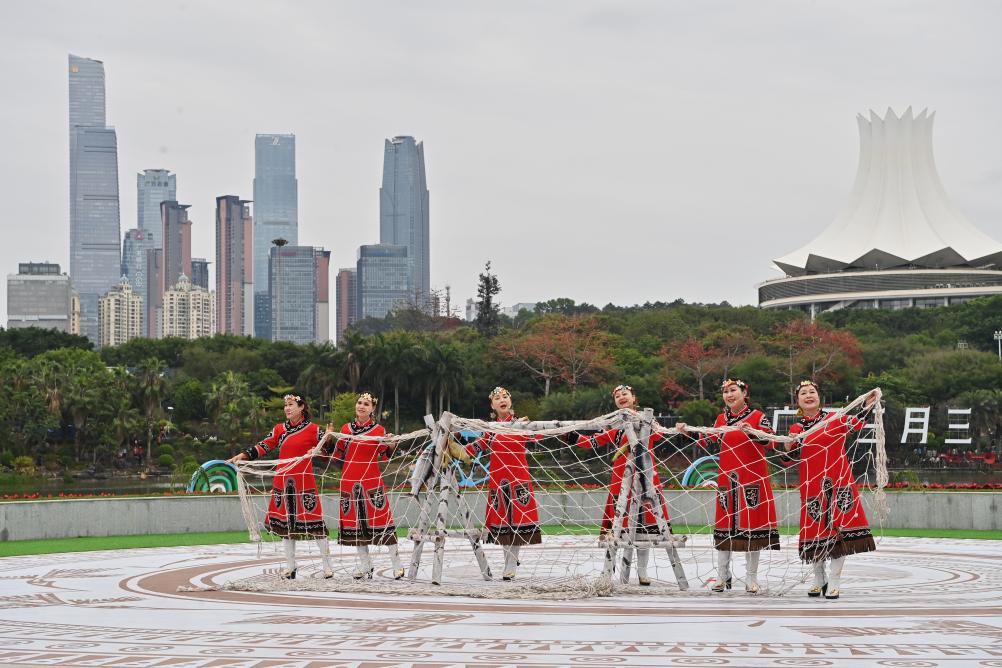 2025年3月31日,黑龙江村歌队队员在“广西三月三·八桂嘉年华”开幕式暨“四季村歌”活动启动仪式现场演唱