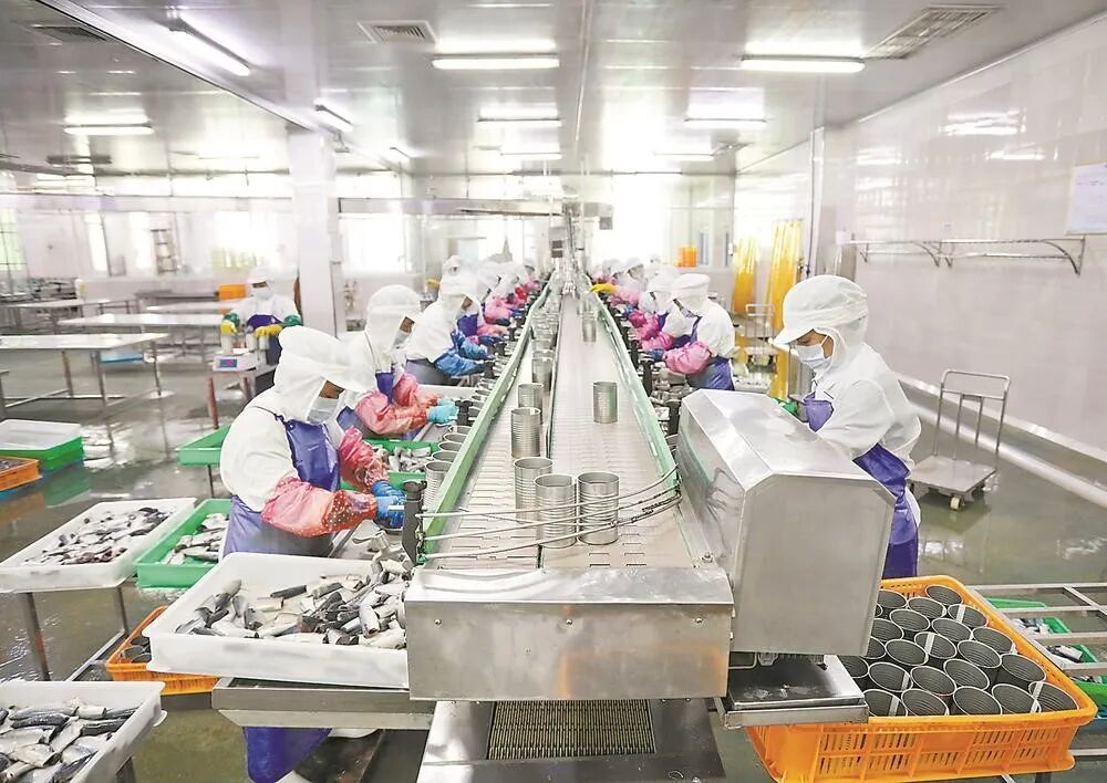 中港水产罐头加工车间内,工人们在加工水产品。图源:央视网福建