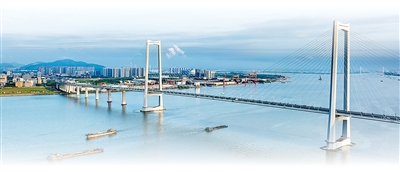 从广东省中山市眺望深中通道。