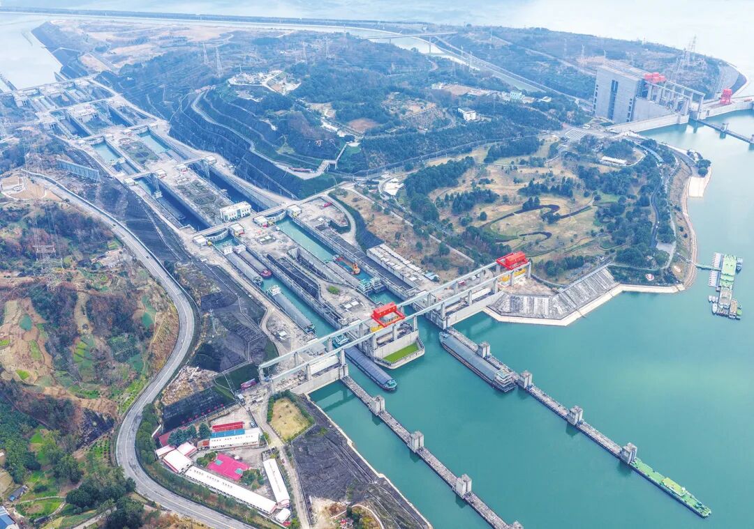 2026年1月1日,在湖北省宜昌市,船舶有序通过三峡双线五级船闸