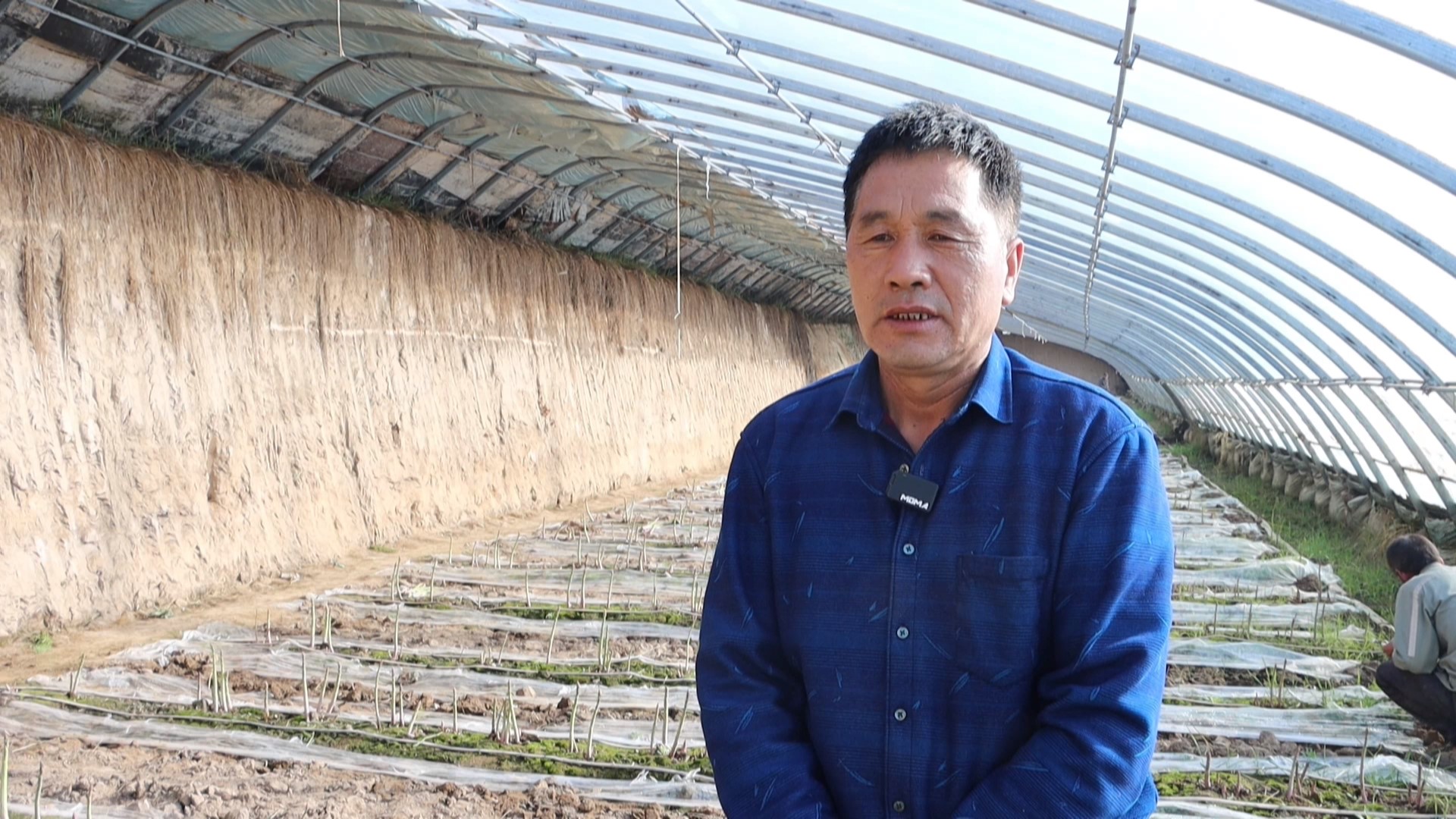 会宁县韩家集镇袁家坪村村民 杨全中:我把我的15亩地流转给了村集体,每年流转费大概5000多元。现在主要是在大棚里干活,栽苗、管理、采笋,一个月赚3000多元,比过去种地收入稳定多了,还能照顾家里。