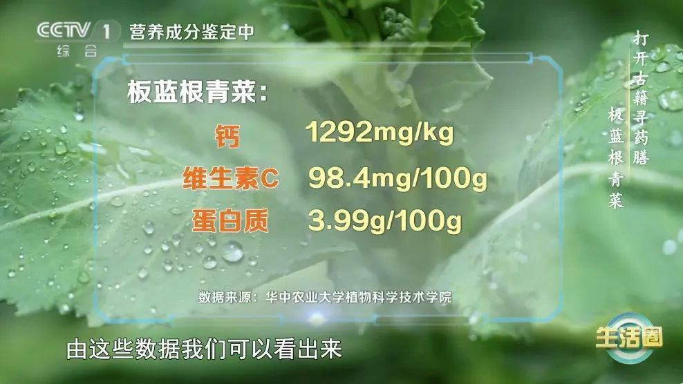 钙:每100克板蓝根青菜的钙含量为129.2毫克,比100克牛奶的钙含量还高。