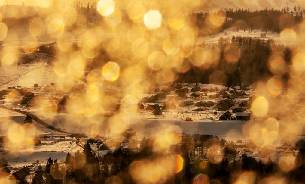 日出时分拍摄的新疆阿勒泰禾木村。新华社记者 费茂华 摄