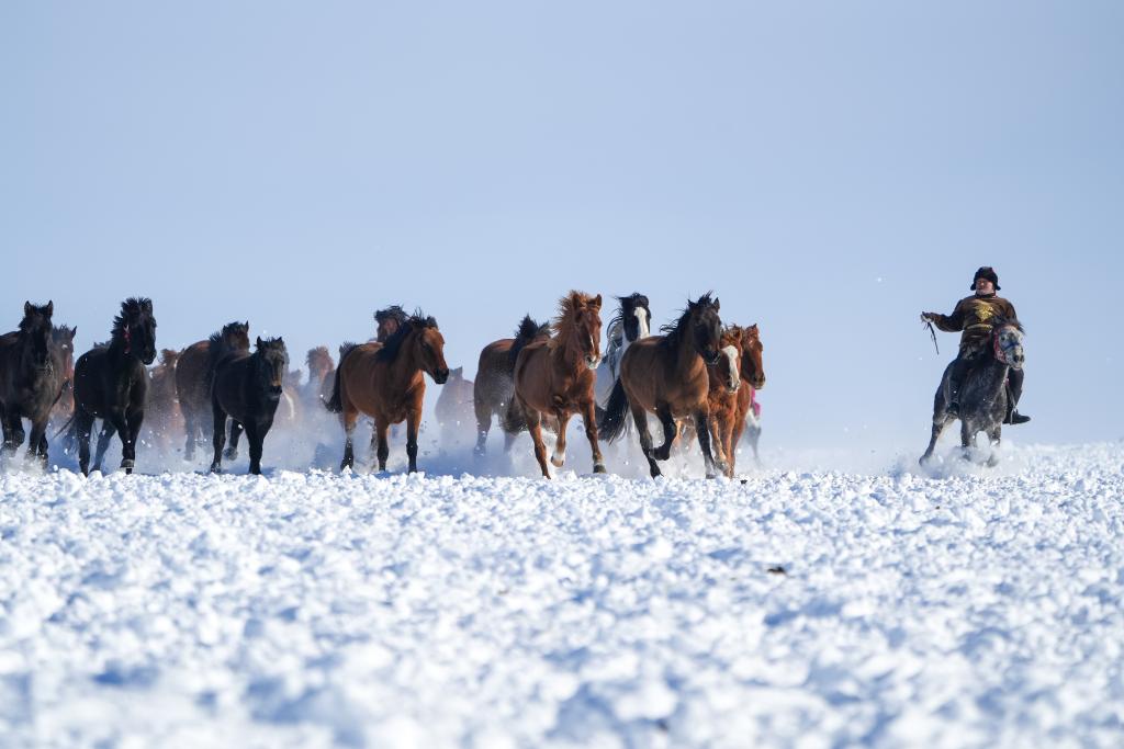 牧民马蹄踏碎雪域寂静
