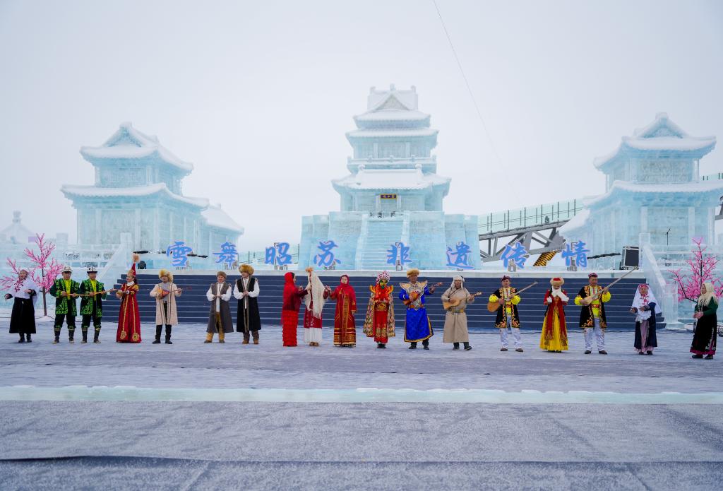 新疆昭苏县湿地公园,演员表演非遗节目。新华社记者 徐宏岩 摄