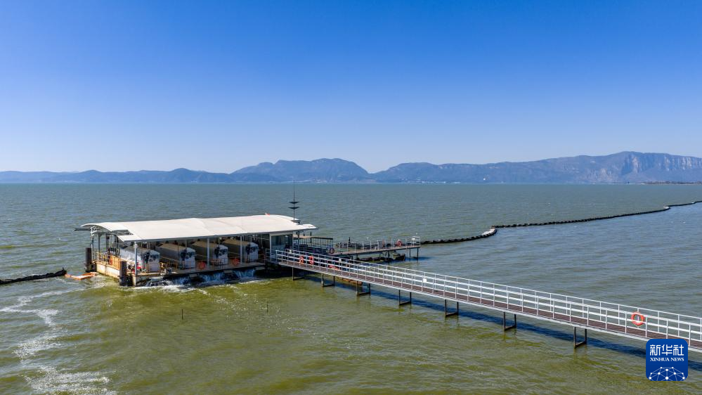 1月22日拍摄的滇池外海罗家营蓝藻收集处理站(无人机照片)。