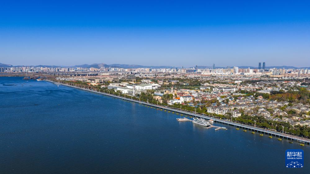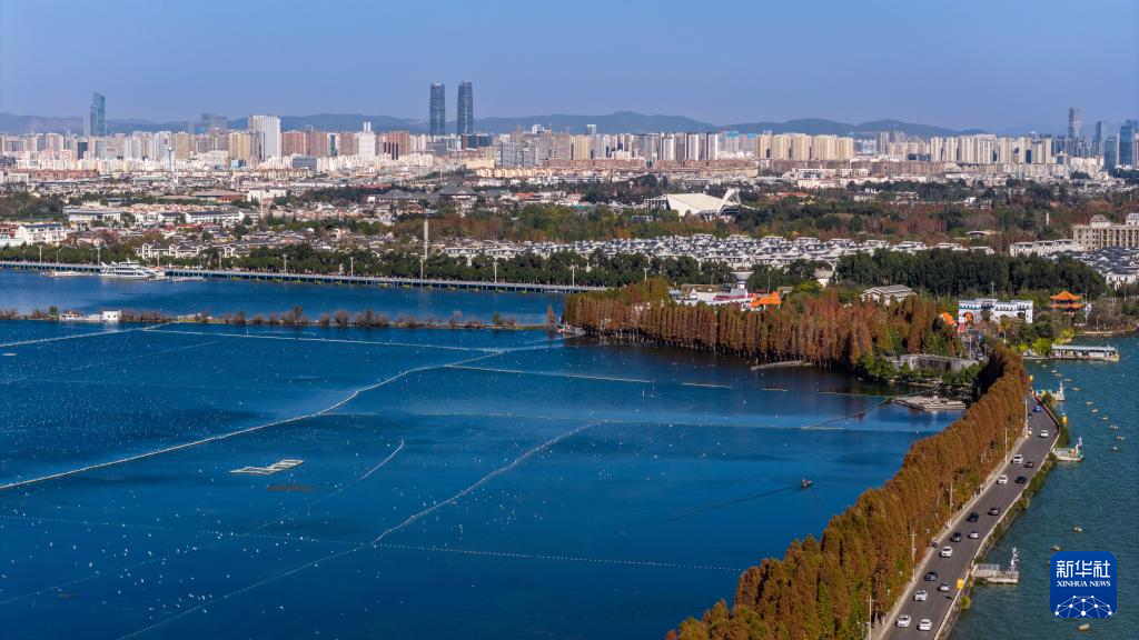 1月22日拍摄的滇池景色(无人机照片)。