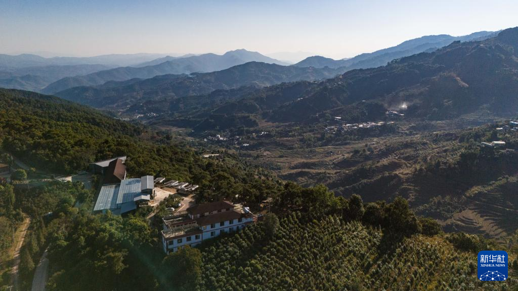 这是1月21日在临沧市临翔区邦东乡昔归村拍摄的昔归咖啡庄园(无人机照片)。