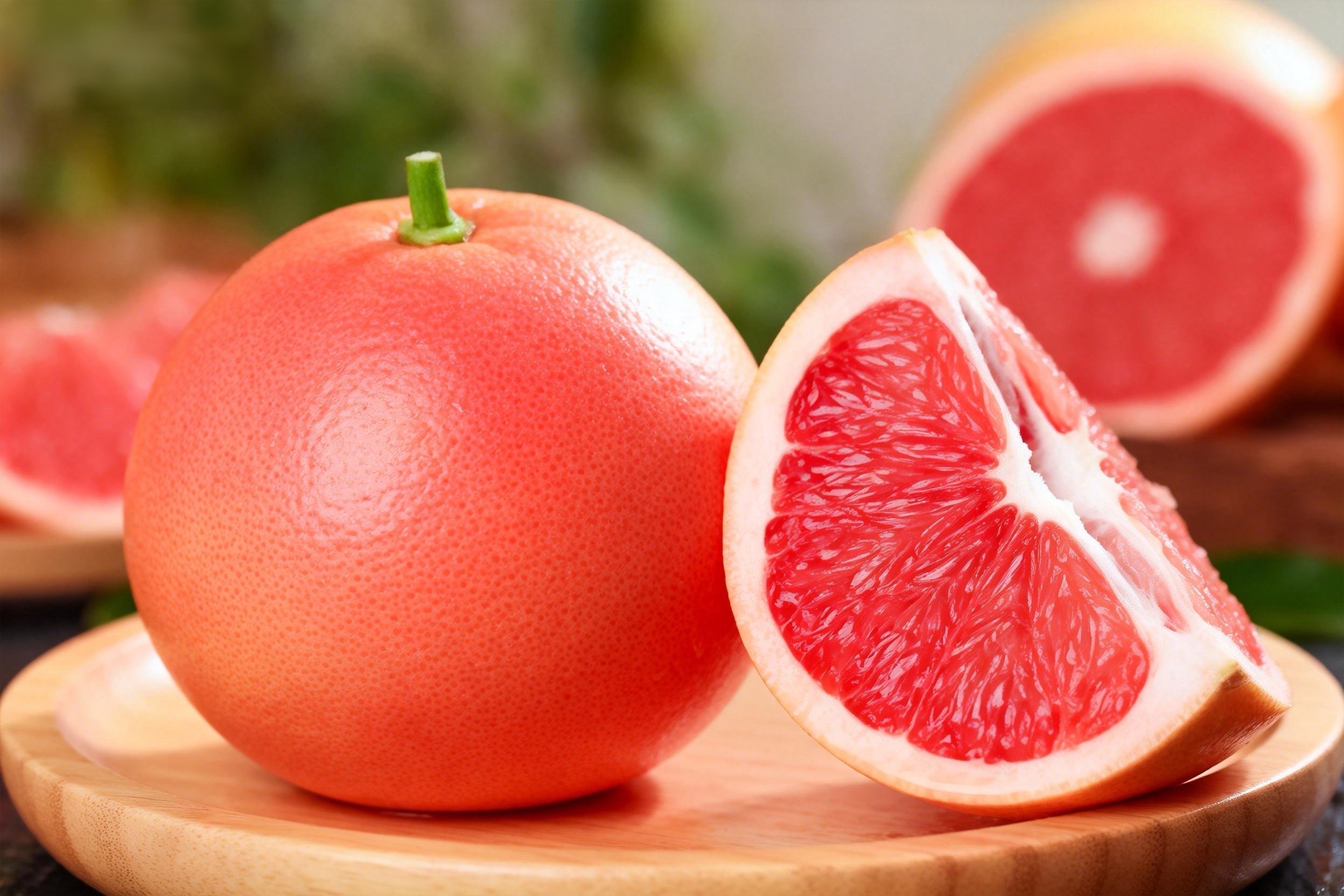 红肉柚(如红心蜜柚)番茄红素(是黄金柚的19倍)抗氧化、保护心血管
