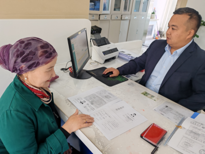 新疆阿勒泰农村商业银行股份有限公司业务员为群众办理活畜抵押贷款手续;