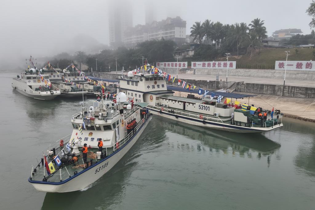 中方53101艇和53105艇从西双版纳景哈警务码头启航。(云南省公安厅水上巡逻总队供图)