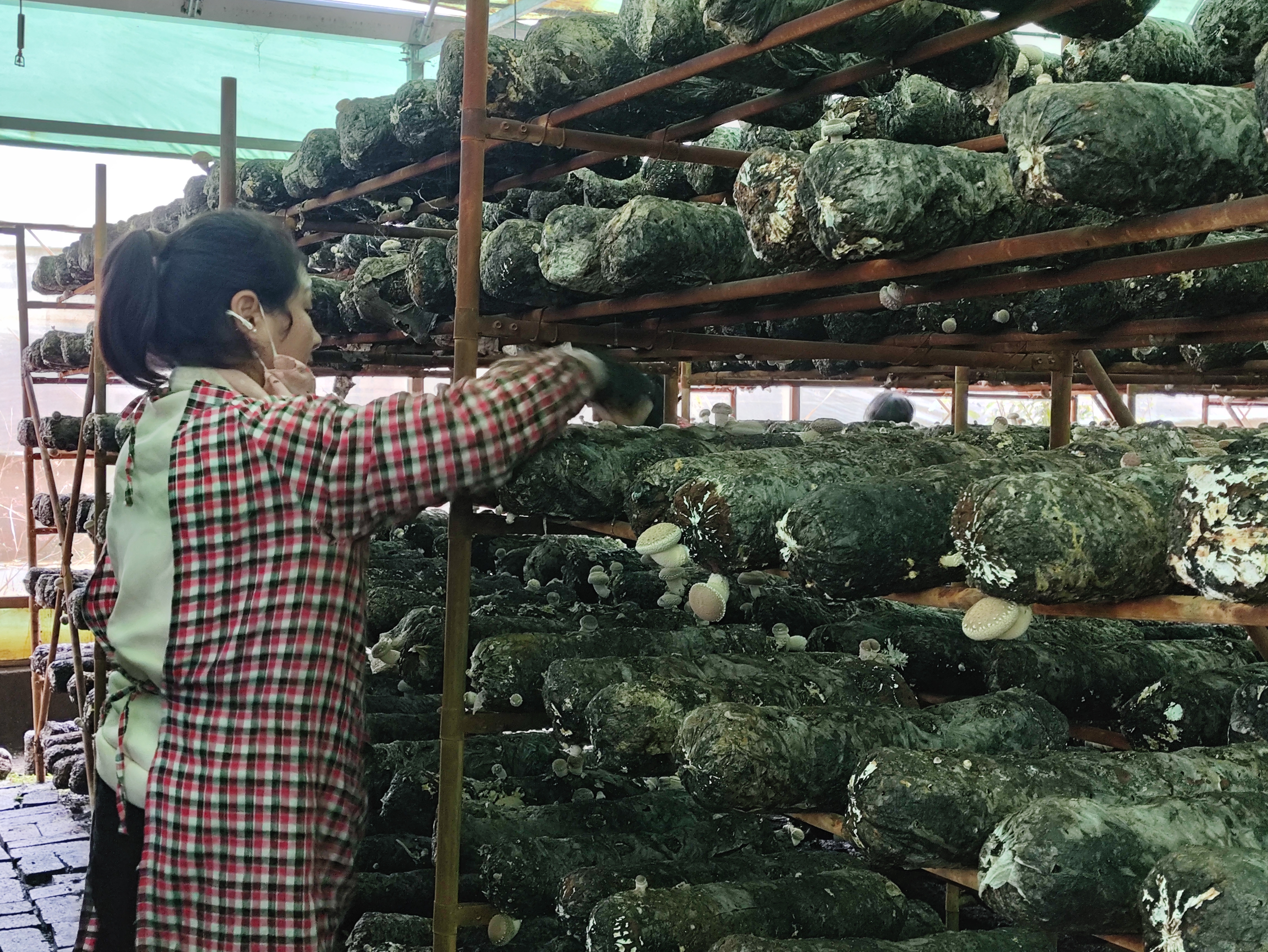 农户正在整理所种植的香菇。