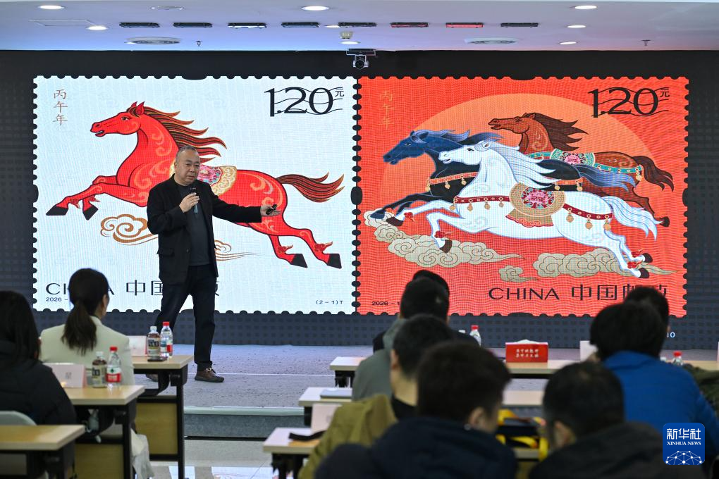 1月29日,《丙午年》生肖邮票设计师王红卫介绍《丙午年》生肖邮票设计理念和传统生肖文化的多元化表现形式。