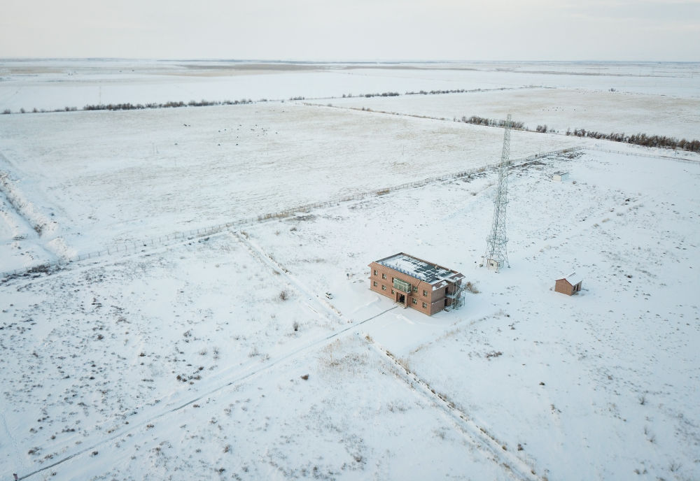 这是位于新疆准噶尔盆地北缘的阿克达拉国家大气本底站(2023年1月8日摄,无人机照片)。新华社记者 李响 摄
