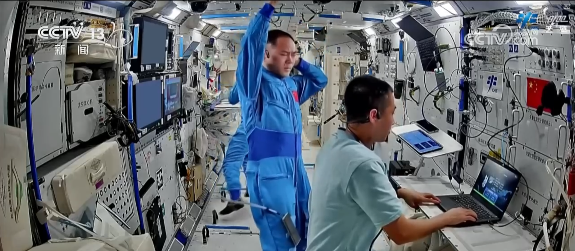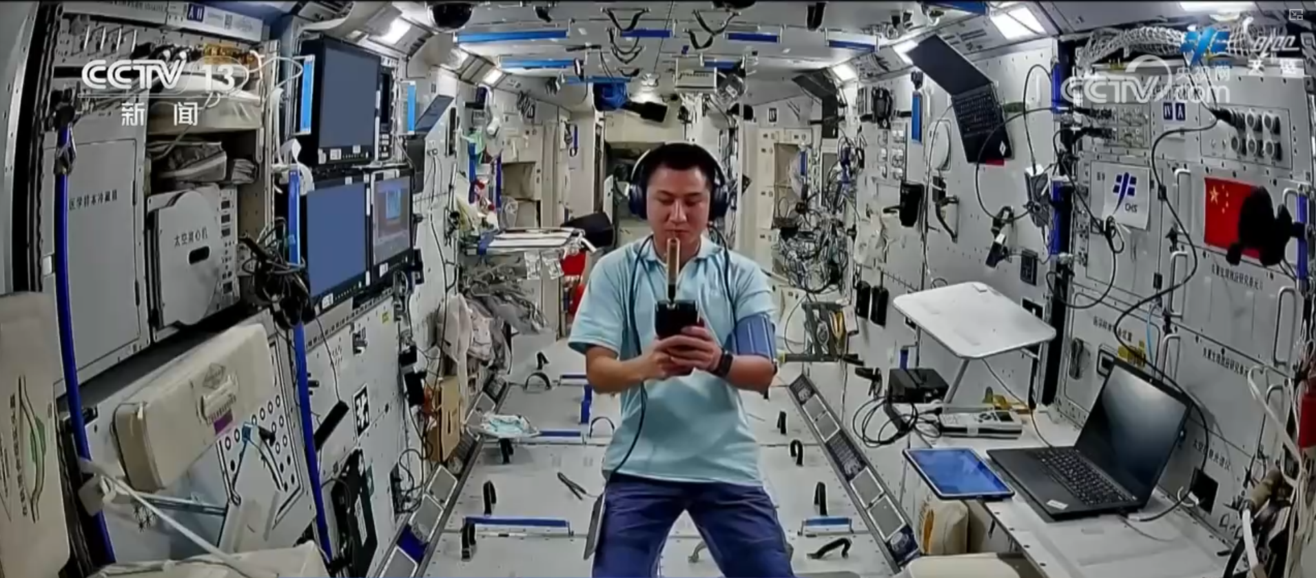 上周,三名航天员按计划开展了多项医学检查,包括动态心电血压、无创心功能检查,腹部、血管、肌肉等超声检查,骨密度测量,听力测试等项目,获取相关数据,密切掌握在轨健康状况。同时,积极开展在轨锻炼,对抗失重生理效应。