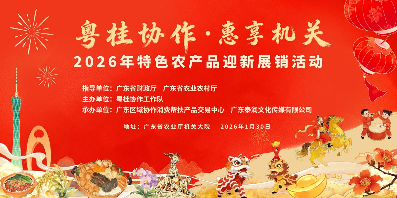 新春将至,年味渐浓,帮扶暖意满溢心间。为扎实推进国家协作帮扶战略,深化粤桂两省(区)消费帮扶合作,2026年1月30日,以“粤桂协作·惠享机关”消费帮扶产品进机关为主题的第二场专场推广活动在广东省农业厅成功举办。本次活动由广东省财政厅、广东省农业农村厅指导,粤桂协作工作队主办,广东区域协作消费帮扶产品交易中心、广东泰润文化传媒有限公司承办。