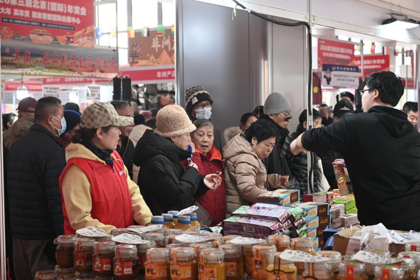 本届年货会的国际板块堪称亮点,汇聚了来自多个国家的特色商品与全国多地的地道好物,让市民不出北京就能“逛遍世界”。