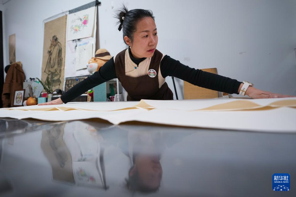 临近马年春节,桃花坞木版年画推陈出新,将生肖马元素融入创作中。在苏州桃花坞年画博物馆里,省级代表性传承人乔兰蓉在工作室里制作马年生肖年画《一马当先》。她手中的刻刀游走于木质纹理之间,颜料随势浸润,线条渐次浮现,一幅生动的年画轮廓徐徐展露。这些年画及其衍生文创产品,以传统非遗技艺融合现代审美,为节日增添了浓郁的年味。